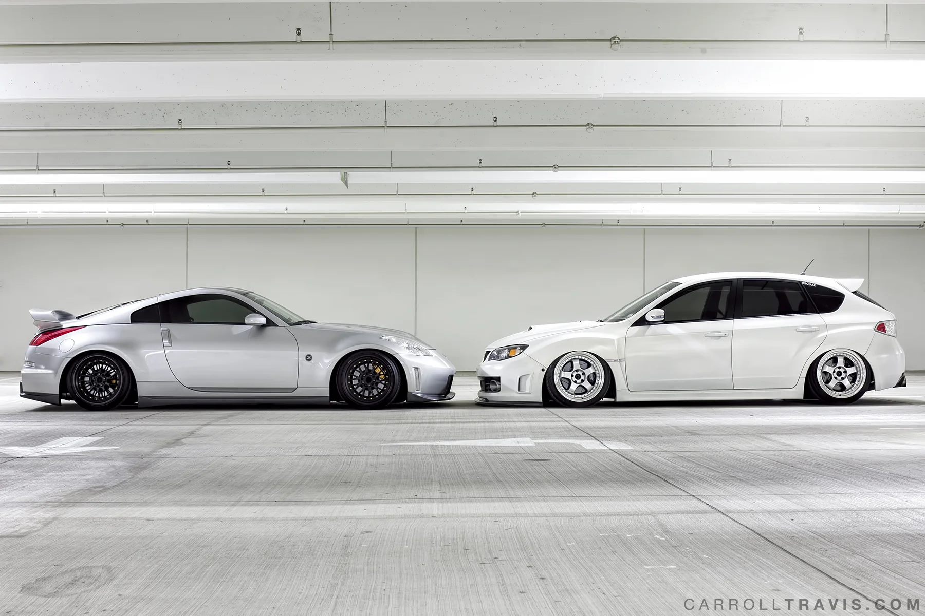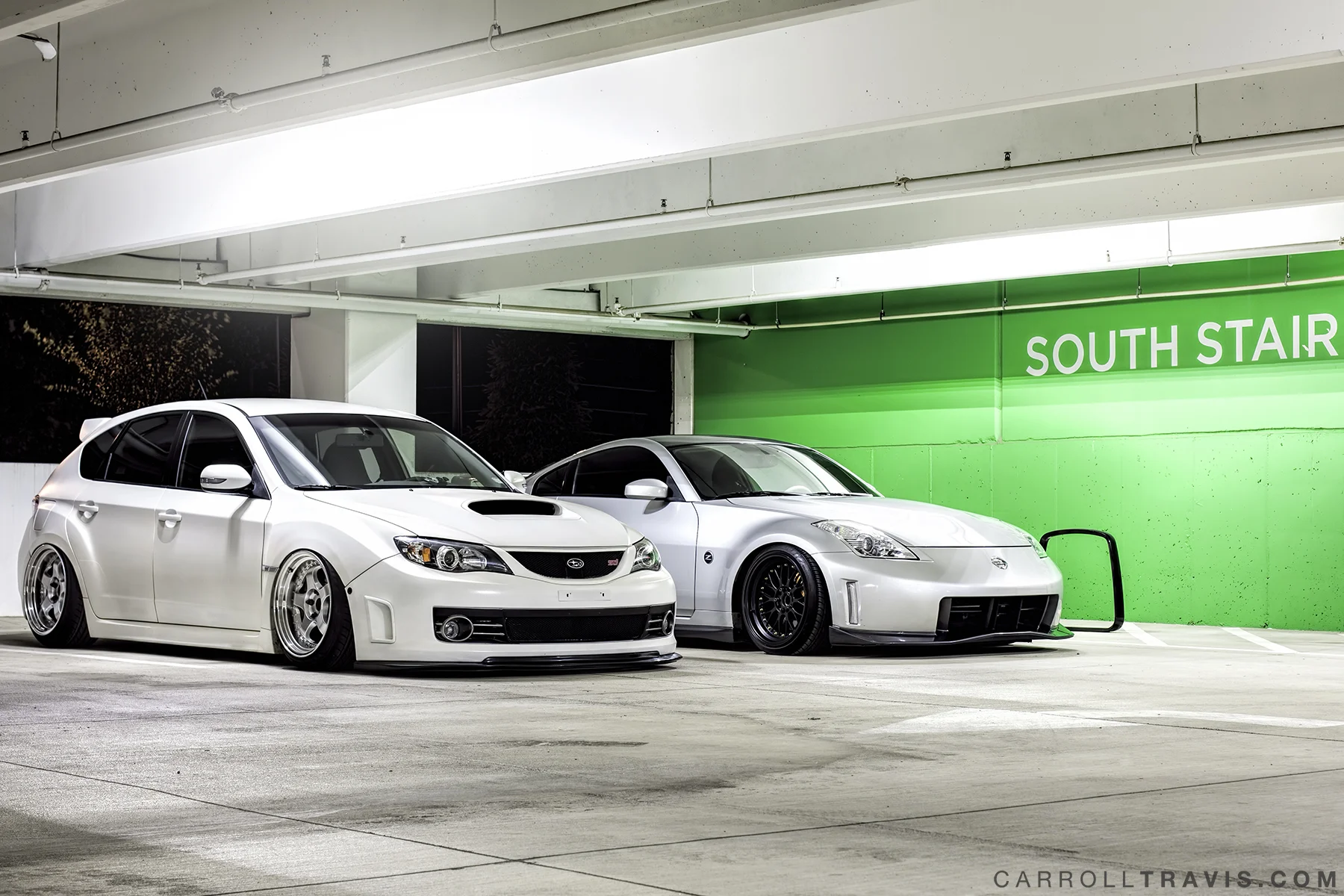 I met up with Jake at my work and right away we set out to a garage down the street where we would meet Steven. Jake had just plastidipped his car and got a new set of wheels making that beauty even more beautiful. Steven's Z is immaculate. Static as hell and loud as a mofo. haha. Both cars were incredibly easy to shoot especially because of how clean they both are. Nothing is more frustrating than having to literally clean or fix a car in post!