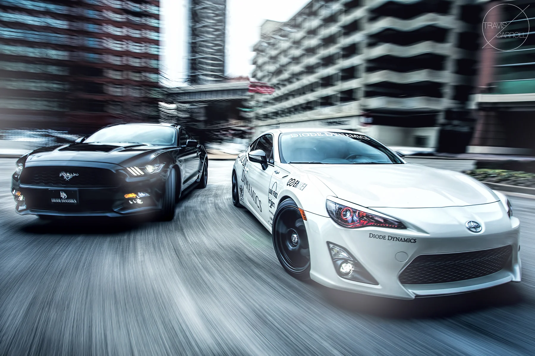 Last week during the -20 degree frigid arctic freeze we decided it would be a good idea to go downtown and shoot the cover for the 2015 Diode Dynamics product catalog. We had been putting off shooting the cover for a few weeks and I was seriously regretting letting it go so long. I called up my buddy Jayson, we packed up the FR-S and Mustang full of gear and hit the road.